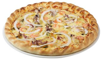 Tomatensauce, Meeresfrüchte, Zwiebeln und Käse